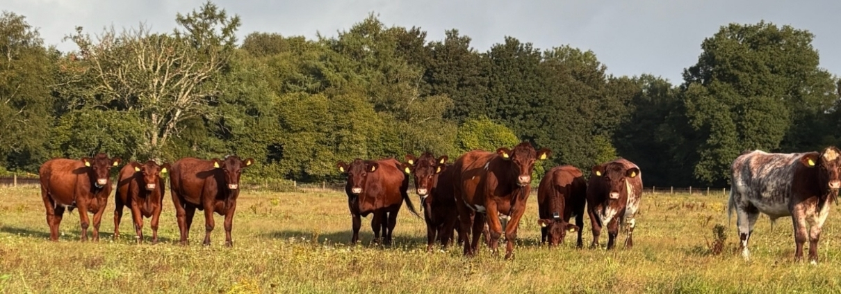 On the farm we have a range of animals, including our English Shorthorn cattle, which are able to graze naturally, contributing to the health of the land rather than degrading it.